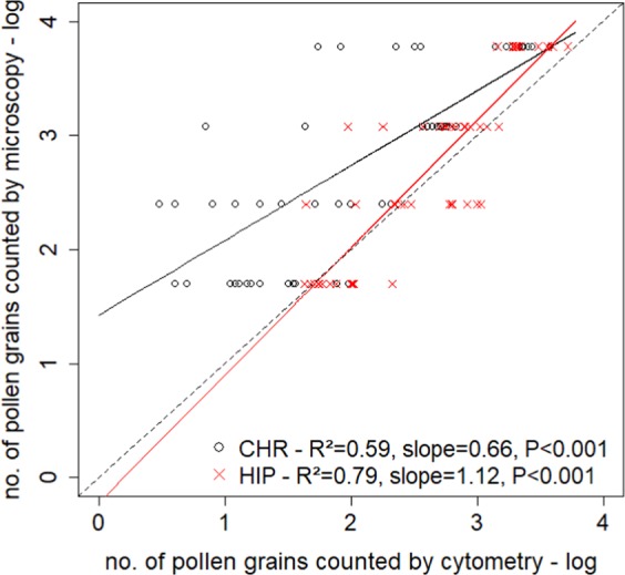 Although the use of metabarcoding to identify taxa in DNA mixtures is widely approved, its reliability in quantifying taxon abundance is still the subject of debate. In this study we investigated the relationships between the amount of pollen grains in mock solutions and the abundance of high-throughput sequence reads and how the relationship was affected by the pollen counting methodology, the number of PCR cycles, the type of markers and plant species whose pollen grains have different characteristics. We found a significant positive relationship between the number of DNA sequences and the number of pollen grains in the mock solutions. However, better relationships were obtained with light microscopy as a pollen grain counting method compared with flow cytometry, with the chloroplastic trnL marker compared with ribosomal ITS1 and with 30 when compared with 25 or 35 PCR cycles. We provide a list of recommendations to improve pollen quantification.