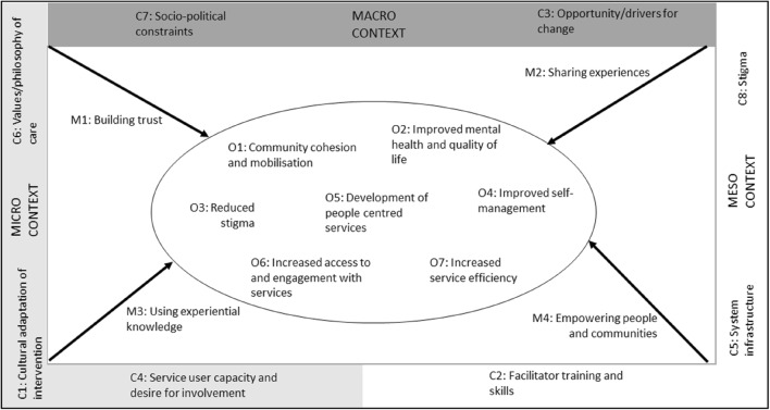Results: Fifty-seven published and unpublished articles were included, 24 were evaluations of CE, including two Randomized Controlled Trials. The majority of CE interventions featured uptake or adaptation of Western models of care. We identified important cultural differences in the enactment of civic engagement in SEA contexts and four mechanisms which, alongside their contextual barriers and facilitators, can be used to explain how civic engagement produces a range of outcomes for people experiencing mental health problems, their families and communities. Our review illustrates how CE interventions can be successfully implemented in SEA, however Western models should be adapted to fit with local cultures and values to promote successful implementation. Barriers to implementation included distrust of services/outside agencies, stigma, paternalistic cultures, limited resource and infrastructure.
