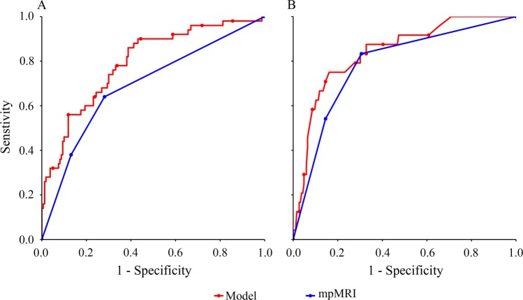 The gold standard for prostate cancer (PCa) diagnosis is prostate biopsy. However, it remines controversial as an invasive mean for patients with PSA levels in the gray zone (4-10 ng/mL). This study aimed to develop strategy to reduce the unnecessary prostate biopsy. We retrospectively identified 235 patients with serum total PSA testing in the gray zone before prostate biopsy between 2014 and 2018. Age, PSA derivates, prostate volume and multiparametric magnetic imaging (mpMRI) examination were assessed as predictors for PCa and clinically significant PCa with Gleason score ≥ 7 (CSPCa). Univariate analysis showed that prostate volume, PSAD, and mpMRI examination were significant predictors of PCa and CSPCa (P < 0.05). The differences of diagnostic accuracy between mpMRI examination (AUC = 0.69) and other clinical parameters in diagnostic accuracy for PCa were not statistically significant. However, mpMRI examination (AUC = 0.79) outperformed prostate volume and PSAD in diagnosis of CSPCa. The multivariate models (AUC = 0.79 and 0.84 for PCa and CSPCa) performed significantly better than mpMRI examination for detection of PCa (P = 0.003) and CSPCa (P = 0.036) among patients with PSA level in the gray zone. At the same level of sensitivity as the mpMRI examination to diagnose PCa, applying the multivariate models could reduce the number of biopsies by 5% compared with mpMRI examination. Overall, our results supported the view that the multivariate model could reduce unnecessary biopsies without compromising the ability to diagnose PCa and CSPCa. Further prospective validation is required.