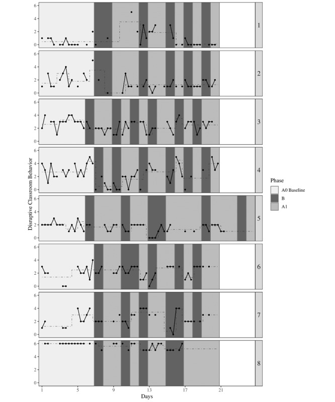 Methods: A total of 8 adolescents attending a special secondary school for students with behavioral and psychiatric problems participated in a single-case experimental ABAB study. Over a 4-week period, participants completed 6 DEEP sessions. In addition, momentary assessments (ie, 3 times a day) of self-reported state-anxiety and teacher-reported classroom behavior were collected throughout all A and B phases.