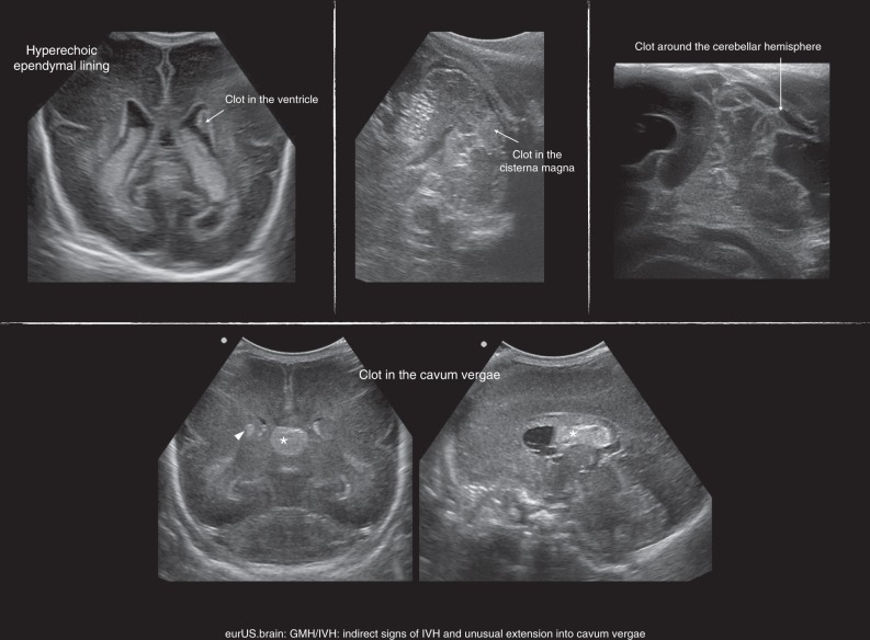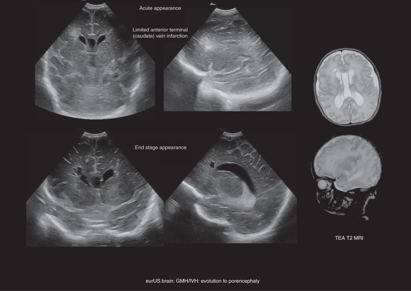Germinal matrix-intraventricular haemorrhage (GMH-IVH), periventricular haemorrhagic infarction (PHI) and its complication, post-haemorrhagic ventricular dilatation (PHVD), are still common neonatal morbidities in preterm infants that are highly associated with adverse neurodevelopmental outcome. Typical cranial ultrasound (CUS) findings of GMH-IVH, PHI and PHVD, their anatomical substrates and underlying mechanisms are discussed in this paper. Furthermore, we propose a detailed descriptive classification of GMH-IVH and PHI that may improve quality of CUS reporting and prediction of outcome in infants suffering from GMH-IVH/PHI.