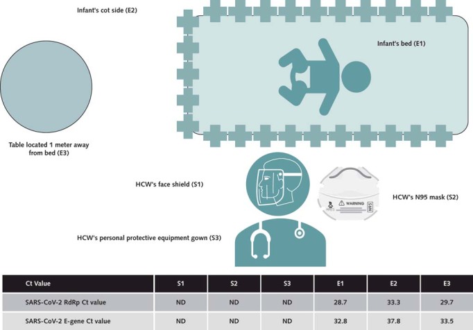 Environment and Personal Protective Equipment Tests for SARS-CoV-2 in the Isolation Room of an Infant With Infection