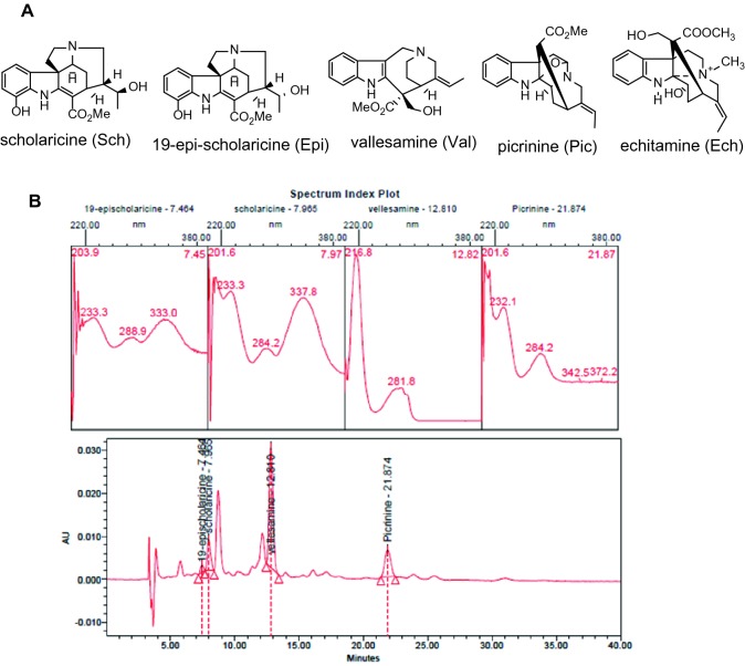Alstonia scholaris (L.) R. Br. (Apocynaceae) is an evergreen tree that has been used to treat lung diseases. In this study, the toxicity profile of indole alkaloids from leaves of A. scholaris was investigated. In acute toxicity tests, mice were administered total alkaloids (TA) and five indole alkaloids. In a chronic toxicity test, rats were continuously administered TA (50, 100, and 300 mg/kg bw) for 13 weeks, followed by a 4-week recovery. A single administration of TA affected the behavior of mice, and at 12.8 g/kg bw, prone position, shortness of breath, wheezing, and convulsion were observed. The half-lethal dose (LD50) in mice was 5.48 g/kg bw, almost 2740 times the clinical dose in humans. Among the five indole alkaloids, the maximum tolerance dose in mice ranged from 0.75 to 4 g/kg bw. The TA-treated rats did not die and showed no adverse effects or dose-dependent changes in weight or food and water consumption, despite fluctuations in hematological and biochemical parameters compared with historical data. Furthermore, both gross and histopathological observations revealed no abnormalities in any organ. With daily oral administration to rats, the non-observed-adverse-effect-level of TA was 100 mg/kg bw. The results indicate that TA is safe for clinical use.