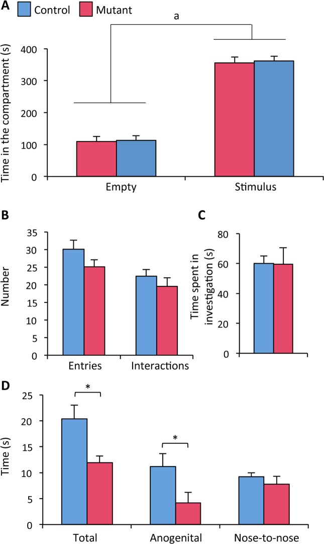 Estradiol derived from neural aromatization of testosterone plays a key role in the organization and activation of neural structures underlying male behaviors. This study evaluated the contribution of the estrogen receptor (ER) β in estradiol-induced modulation of social and mood-related behaviors by using mice lacking the ERβ gene in the nervous system. Mutant males exhibited reduced social interaction with same-sex congeners and impaired aggressive behavior. They also displayed increased locomotor activity, and reduced or unaffected anxiety-state level in three paradigms. However, when mice were exposed to unescapable stress in the forced swim and tail suspension tests, they spent more time immobile and a reduced time in swimming and climbing. These behavioral alterations were associated with unaffected circadian and restraint stress-induced corticosterone levels, and unchanged number of tryptophan hydroxylase 2-immunoreactive neurons in the dorsal raphe. By contrast, reduced mRNA levels of oxytocin and arginine-vasopressin were observed in the bed nucleus of stria terminalis, whereas no changes were detected in the hypothalamic paraventricular nucleus. The neural ERβ is thus involved to different extent levels in social and mood-related behaviors, with a particular action on oxytocin and arginine-vasopressin signaling pathways of the bed nucleus of stria terminalis, yet the involvement of other brain areas cannot be excluded.