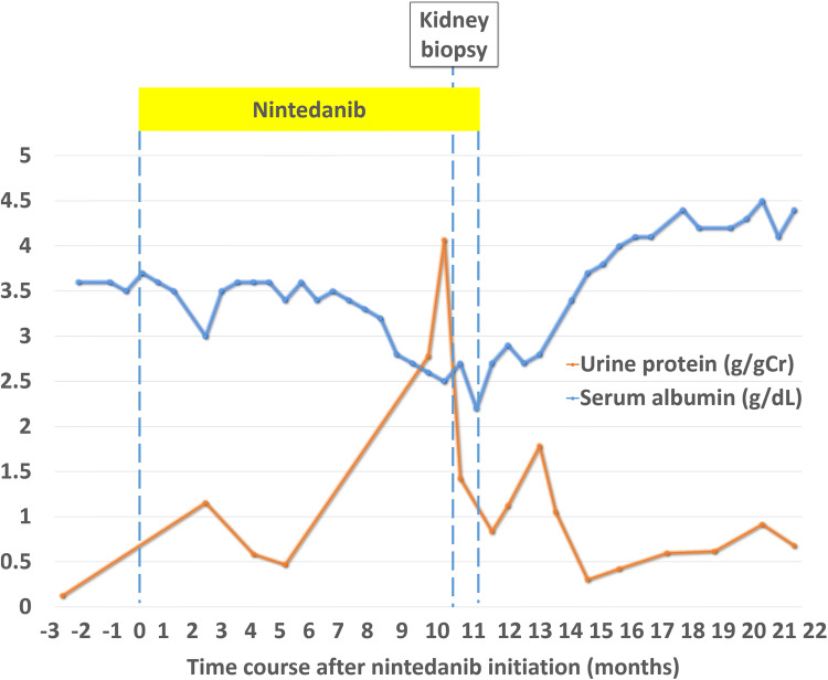 Keywords: Glomerular microangiopathy; Nintedanib; Onconephrology; Proteinuria; Pulmonary fibrosis.