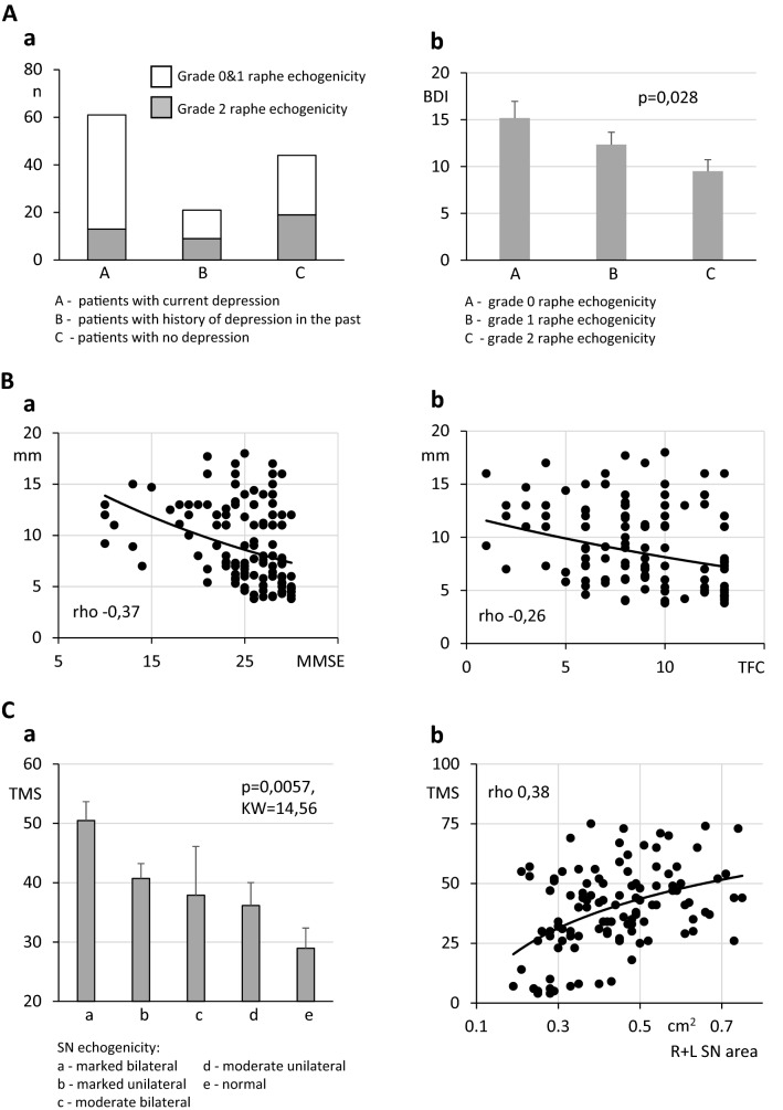 Keywords: Depression; Huntington’s disease; Nucleus raphe; Substantia nigra; Transcranial sonography.