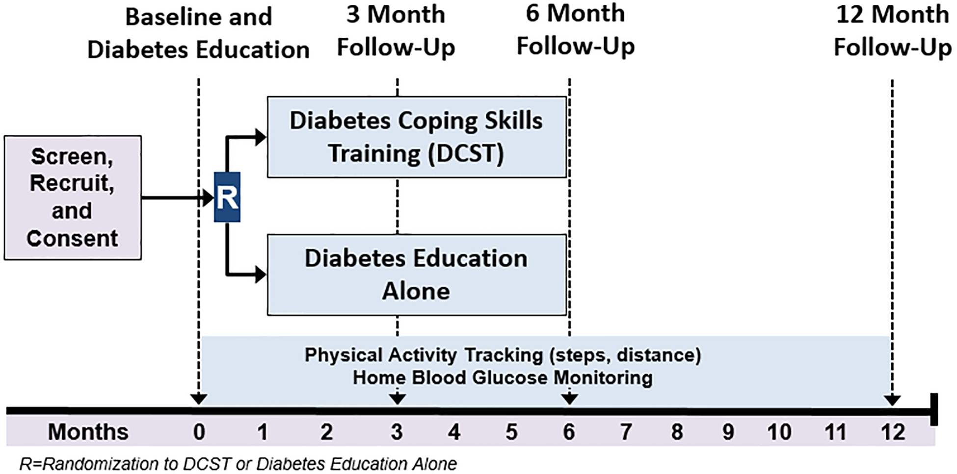 Breast cancer survivors with type 2 diabetes are at high risk for cancer recurrence, serious health complications, more severe symptoms, psychological distress, and premature death relative to breast cancer survivors without diabetes. Maintaining glycemic control is critical for decreasing symptoms and preventing serious health problems. Many breast cancer survivors with type 2 diabetes have difficulty maintaining diabetes self-management behaviors and achieving glycemic control. Both cancer and diabetes-related symptoms (e.g., physical symptoms and psychological distress) are often barriers to engaging in diabetes self-management strategies. This study evaluates a novel diabetes coping skills training (DCST) intervention for improving breast cancer survivors' abilities to manage symptoms and adhere to recommended diabetes self-management behaviors. The telephone-based DCST protocol integrates three key theory-based strategies: coping skills training for managing symptoms, adherence skills training, and healthy lifestyle skills training. A randomized clinical trial will test the DCST intervention plus diabetes education by comparing it to diabetes education alone. Symptoms, distress, diabetes self-management behaviors, and self-efficacy will be assessed at baseline and 3, 6, and 12 months. Glycosylated hemoglobin (HbA1c) will be assessed at baseline, 6, and 12 months. This study addresses a critical gap in the care of breast cancer survivors by evaluating a novel behavioral intervention to improve the management of symptoms, adherence, and glycemic control in breast cancer survivors with type 2 diabetes. Special considerations for this medically underserved population are also provided. The findings of this study could lead to significant improvements in clinical care and beneficial outcomes for breast cancer survivors. Trials registration: ClinicalTrials.gov, NCT02970344, registered 11/22/2016.