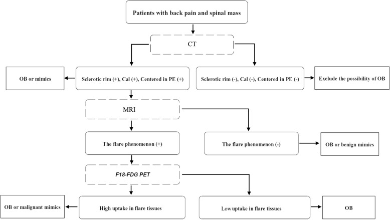 Conclusions: Spinal OB has multiple unique characteristic radiological features. Although a larger sample size is needed, combining CT, MRI and PET may be beneficial to optimize preoperative diagnosis and care of patients with OBs.