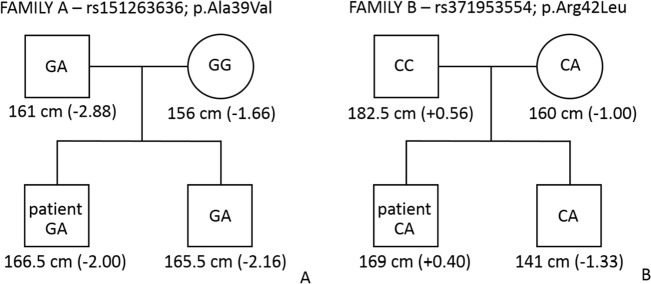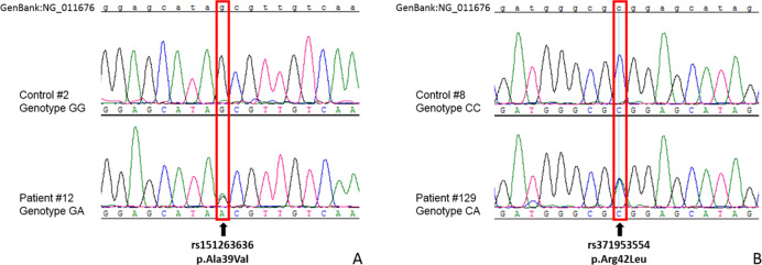 Results: Thirteen SNP variants were identified, including four missense variants, six in 5'UTR, and three in introns. The frequency of minor missense variants was low (<0.02) and similar in the compared cohorts. However, two of these variants, Ala39Val (rs151263636) and Arg42Leu (rs371953554), were found (heterozygote status) in only two GHD patients. These substitutions, according to databases, can potentially be deleterious.