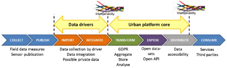 Keywords: interoperability; open data; open specifications framework; open standards; smart city; smart services; urban data platform.