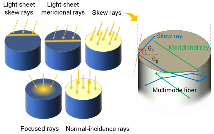 The evanescent fields along multimode fibers are usually relatively weak. To enhance the sensitivity of the resulting sensors, skew rays have been exploited for their larger number of total internal reflections and their more comprehensive spread over the fiber surface. The uniform distribution of light-matter interactions across the fiber surface facilitates high sensitivity through an increased interaction area, while mitigating the risk of laser-induced coating-material damage and photobleaching. Power-dependent measurements are less susceptible to temperature effects than interferometric techniques, and place loose requirements on the laser source. This review highlights the key developments in this area, while discussing the benefits, challenges as well as future development.