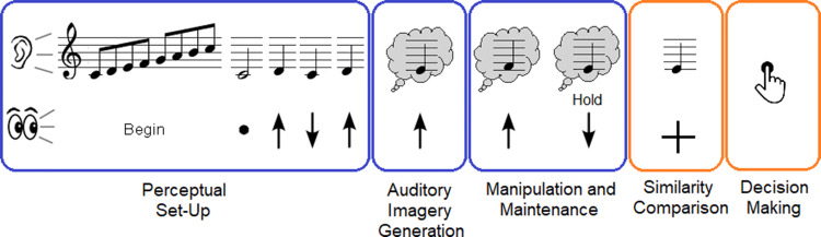 The ability to silently hear music in the mind has been argued to be fundamental to musicality. Objective measurements of this subjective imagery experience are needed if this link between imagery ability and musicality is to be investigated. However, previous tests of musical imagery either rely on self-report, rely on melodic memory, or do not cater in range of abilities. The Pitch Imagery Arrow Task (PIAT) was designed to address these shortcomings; however, it is impractically long. In this paper, we shorten the PIAT using adaptive testing and automatic item generation. We interrogate the cognitive processes underlying the PIAT through item response modelling. The result is an efficient online test of auditory mental imagery ability (adaptive Pitch Imagery Arrow Task: aPIAT) that takes 8 min to complete, is adaptive to participant's individual ability, and so can be used to test participants with a range of musical backgrounds. Performance on the aPIAT showed positive moderate-to-strong correlations with measures of non-musical and musical working memory, self-reported musical training, and general musical sophistication. Ability on the task was best predicted by the ability to maintain and manipulate tones in mental imagery, as well as to resist perceptual biases that can lead to incorrect responses. As such, the aPIAT is the ideal tool in which to investigate the relationship between pitch imagery ability and musicality.