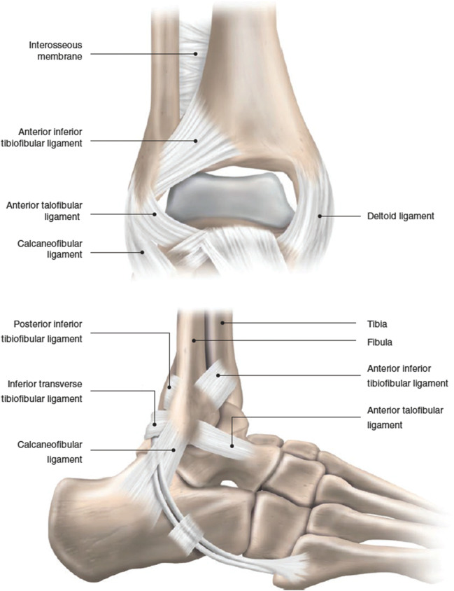 Purpose of review: The purpose of this review is to describe the current evidence on the most common sports-related ankle injuries. Joint anatomy, epidemiology, clinical findings, diagnostic approach, and treatment are presented with a specific focus on the available evidence towards return to play.