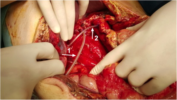 Case presentation: We reviewed the clinical records of two male patients aged 17 and 47 years old who underwent a two-stage pancreaticoduodenectomy after a previous Damage-Control Surgery (DCS). Both patients were transferred to our Hepatobiliopancreatic Unit 2 days after immediate DCS with haemostasis, debridement, duodenostomy, gastroenterostomy, external drainage and laparostomy. One day after, they both underwent a two-stage Whipple's procedure with external cannulation of the main bile duct and the main pancreatic duct with seized calibre silicone drains through the skin. The reconstructive phase was performed two weeks later. The first patient had an uneventful post-operative course and was discharged on post-operative day 8. The second patient developed a high debt biliary fistula on post-operative day 5 being submitted to a relaparotomy with extensive peritoneal lavage. After conservative measures the fistula underwent a progressive closure in 15 days, and the patient was discharged at post-operative day 50 without any limitations.