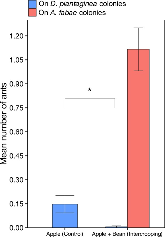 Aphid-infested beans divert ant attendance from the rosy apple aphid in apple-bean intercropping
