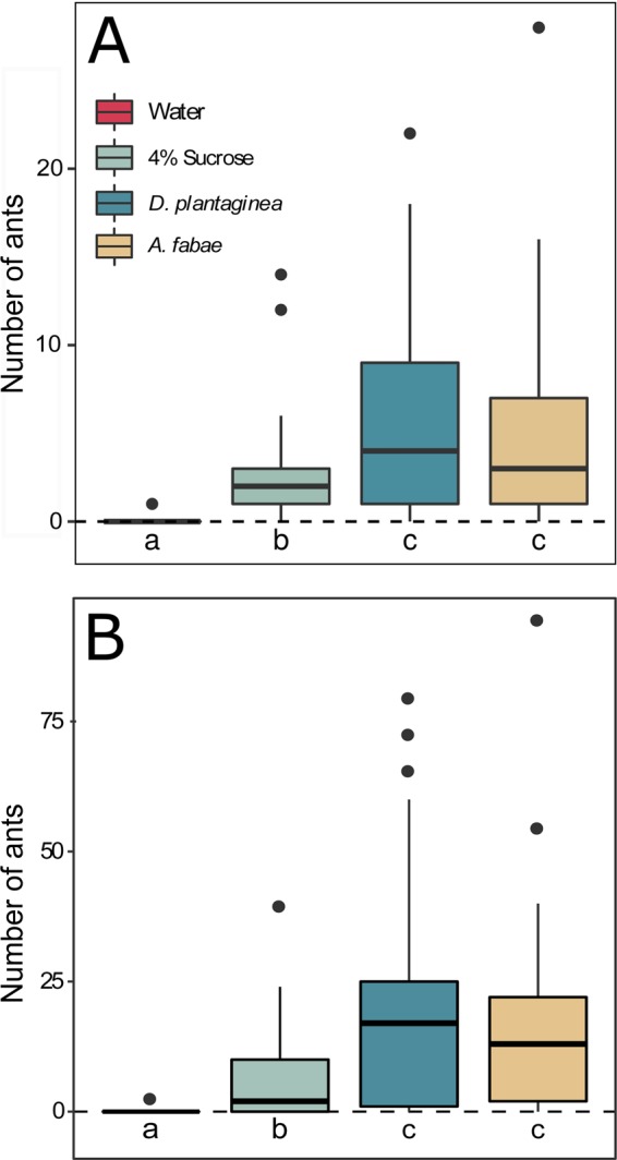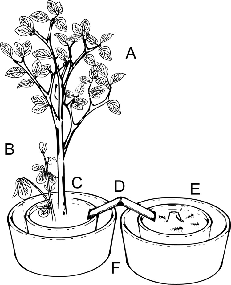 Ecological intensification of cropping systems aims at restoring multi-functionality while supporting current productivity levels. Intercropping is a form of ecological intensification involving ecological processes beneficial to farmers that do not take place in monocultures. Thus, it represents a practical approach to decrease the use of synthetic inputs such as insecticides in cultivated systems. Whereas insecticide reduction via intercropping-facilitated suppression of aphids is reported in literature, the majority of published studies focussed on herbaceous crops. Thus, the effect of intercropping on aphid populations of cultivated trees remains largely unaddressed. In this study we hypothesized that intercropping a specific companion plant within perennial crops would divert ant attendance from an aphid attacking the crop to another aphid feeding on the newly introduced plant, reducing aphid damage on the crop. We tested our hypothesis in the system of apple (Malus domestica Borkhausen), the rosy apple aphid (Dysaphis plantaginea Passerini) and the black garden ant (Lasius niger L.). Bean plants (Vicia faba) with the black bean aphid (Aphis fabae Scopoli) were intercropped within apple trees inoculated with D. plantaginea. We measured ant attendance, aphid development and survival as well as honeydew composition on both plant species through semi-field and field experiments. The majority of ants chose to attend A. fabae over D. plantaginea in the semi-field experiment with potted plants. In the orchard, a larger majority of scouts were scored on A. fabae over D. plantaginea. A higher number of D. plantaginea colonies remained active in the apple control, whilst they were almost eradicated by intercropping. Although chemical analyses of honeydew disclosed differences in the carbohydrate and amino acid profiles between aphid species, the difference in honeydew composition did not explain the preference for A. fabae. Ants did not discriminate between the two honeydew mimics both in laboratory and field bioassays. Our results showed the potential of intercropping apple trees with beans as a method to reduce ant attendance and thus colony survival. We propose that intercropping represents a bottom-up approach towards ecological intensification of perennial crops. Together with other ecosystem-based measures such as habitat management, intercropping should be considered when planning ecosystem redesign to increase biological control of pests.