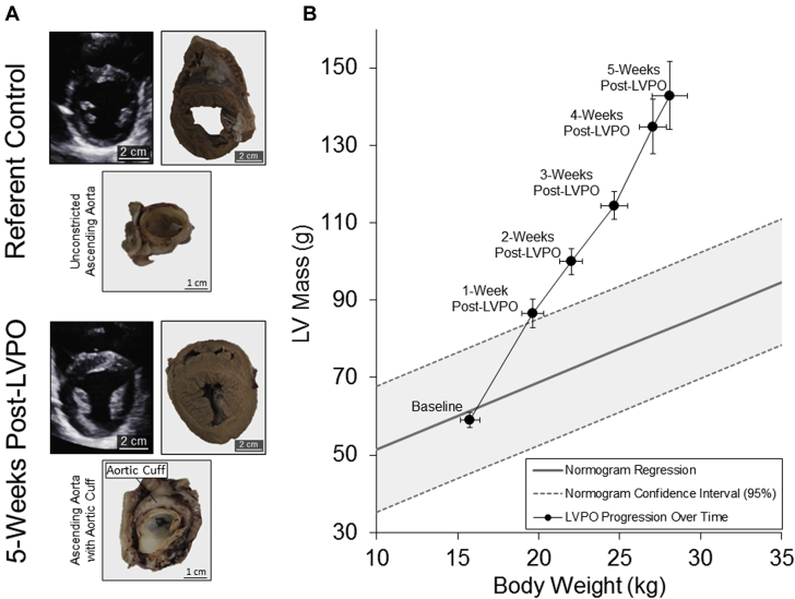 Keywords: Ct, cycle time; EDV, end-diastolic volume; EF, ejection fraction; ESV, end-systolic volume; HF, heart failure; HFpEF, heart failure with preserved ejection fraction; HFrEF, heart failure with reduced ejection fraction; IVRT, isovolumic relaxation time; LA, left atrial; LV, left ventricular; LVPO, left ventricular pressure overload; NT-proBNP, N-terminal pro-brain natriuretic peptide; PCR, polymerase chain reaction; PRSW, pre-load recruitable stroke work; SHG, second harmonic generation; STE, speckle tracking echocardiography; echocardiography; heart failure; pressure overload; qPCR, quantitative real-time PCR.