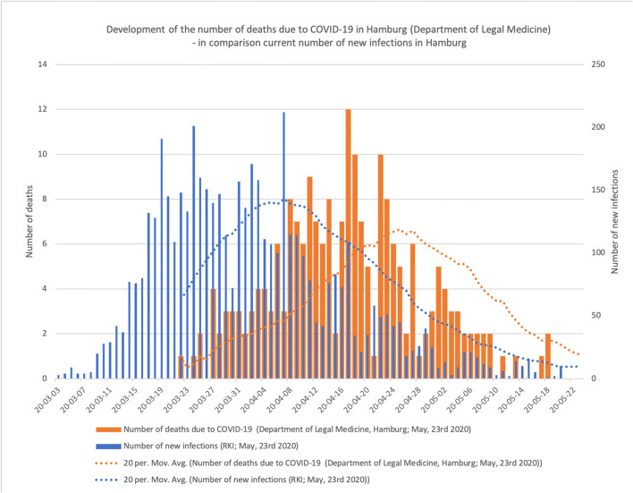 - Edler C, Schröder AS, Aepfelbacher M, Fitzek A, Heinemann A, Heinrich F, Klein A, Langenwalder F, Lütgehetmann M, Meißner K, Püschel K, Schädler J, Steurer S, Mushumba H, Sperhake JP (2020) Dying with SARS-CoV-2 infection – an autopsy study of the first consecutive 80 cases in Hamburg, Germany. Int J Legal Med, in this issue - PMC - PubMed