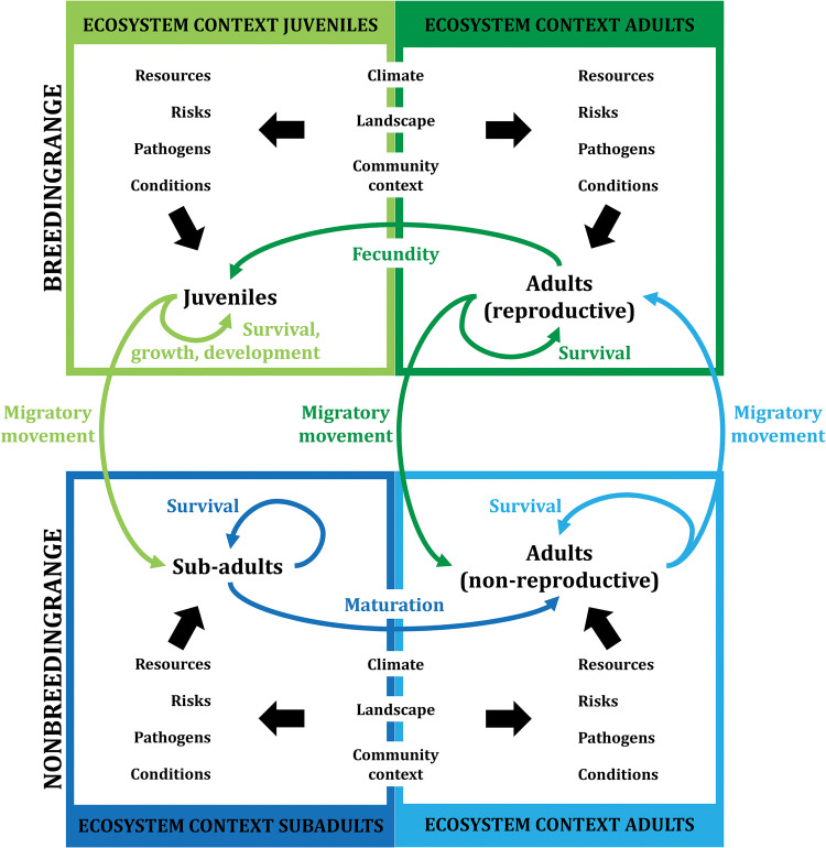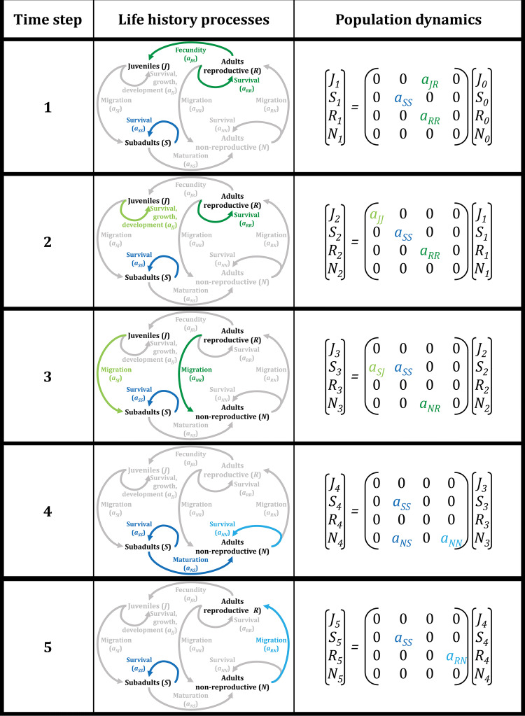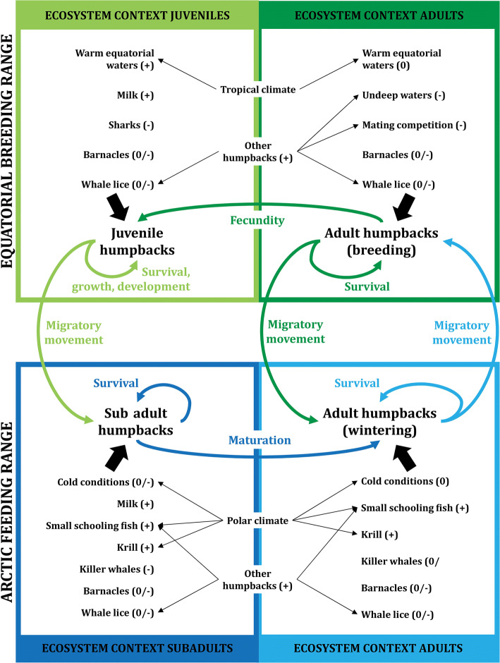 Keywords: Barnacle goose; Dark-bellied brent goose; Humpback whale; Matrix population modelling; Ontogeny; Pacific salmon; Reproduction; Seasonal migration.