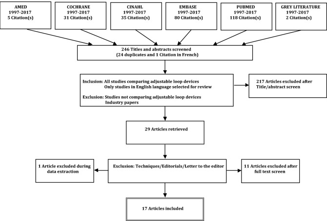 Results: Eleven laboratory and six clinical studies were reviewed. The laboratory-based studies have frequently shown elongation of adjustable loop devices to more than 3 mm under loading protocols, whereas the clinical studies have not shown any significant differences between the patients with fixed loop and the ones with adjustable loop devices.