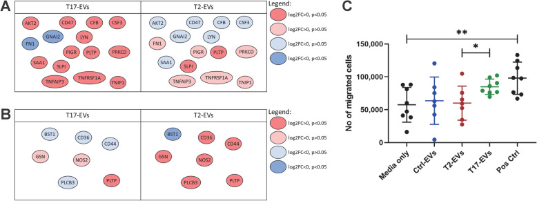 Results: Our data shows that EVs are secreted and can be isolated from the apical side of HBEC-ALI and that cytokine stimulation increases EV release. Genes upregulated in cells stimulated with T2 or T17 cytokines were increased also on protein level in the EVs. Proteins found in T17-derived EVs were suggested to be involved in pathways related to neutrophil movement which was supported by assessing neutrophil chemotaxis ex vivo.