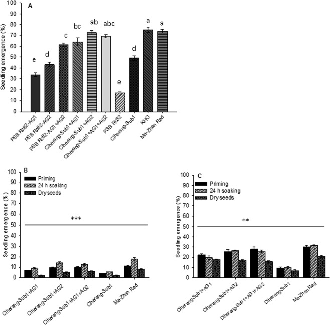 - Yamauchi M, Aguilar A, Vaughan D, Seshu D. Rice (Oryza sativa L.) germplasm suitable for direct sowing under flooded soil surface. Euphytica. 1993;67(3):177–184. doi: 10.1007/BF00040619. - DOI