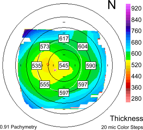 This study compared one-year postoperative outcomes of laser refractive surgery combined with laser asymmetric keratectomy (LAK) and laser in situ keratomileusis (LASIK)for myopia correction in middle-aged patients (aged 40-49 years) with a total corneal thickness deviation (summed across four directions) ≥ 80 microns. The control group (n = 26; 52 eyes) underwent LASIK; the comparison group (n = 26; 52 eyes) underwent combined laser refractive surgery and LAK. Age, spherical equivalence, uncorrected visual acuity (near and far), corneal irregularity on the Orbscan map, sum of corneal thickness deviations in four directions, corneal thickness distribution, distance between the maximum posterior elevation (best-fit sphere; BFS) and visual axis, and postoperative blurring scores were analysed retrospectively between the groups. Both groups had similar preoperative findings. Postoperatively, the sum of corneal thickness deviations in four directions (p = 0.000), distance between maximum posterior elevation (BFS) and visual axis (p = 0.003),blurring score (p = 0.001), and corneal irregularity in the 3.0 and 5.0 mm zones on the Orbscan map (p = 0.033 and p < 0.0001, respectively) were significantly lower in the comparison group (p = 0.000). LAK reduced total corneal thickness deviation, improved corneal symmetry, and reduced blurring scores significantly, one-year postoperatively. LAK could resolve shortcomings of LASIK, producing better surgical outcomes.