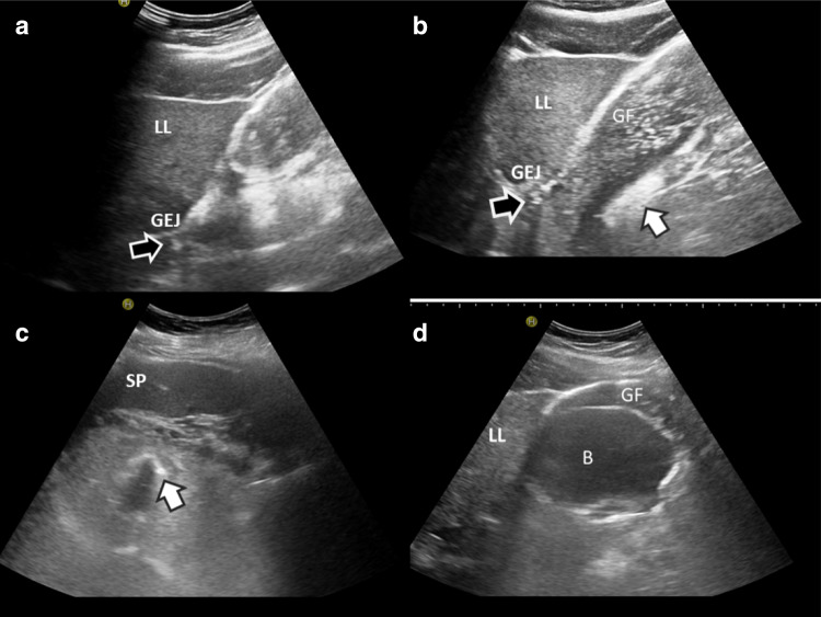Results: The ultrasound hyperechoic signal of the capsule in the gastric lumen was visible early on and was confirmed after the injection of a few milliliters of saline solution in the capsule with a cyst-like shape. The insertion of the balloon was successful in all cases at the first attempt, and the complete filling was monitored in real-time without the need for fluoroscopy. Postprocedure symptoms were limited to the first 24-48 h and were controlled by symptomatic therapy; endoscopic removal of the balloon because of painful distal gastric migration was necessary in one case after 3 months.