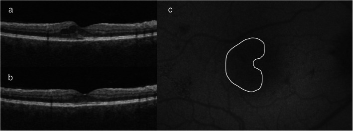 Methods: The area of retinal thickening on OCT was treated with confluent laser spots at individually titrated power. The fovea was spared from treatment. Effectiveness and safety were evaluated through OCT and autofluorescence (AF) as well as BCVA.