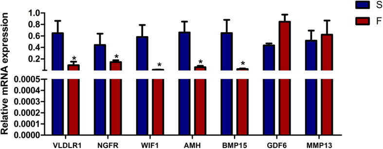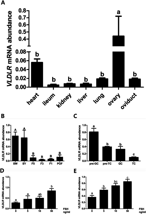 Results: Transcriptomic analysis revealed 855 differentially expressed genes (DEGs) between SY follicles and F6 follicles in laying hens, among which 202 were upregulated and 653 were downregulated. Proteomic analysis revealed 259 differentially expressed proteins (DEPs), including 175 upregulated and 84 downregulated proteins. Among the identified DEGs and DEPs, changes in the expression of seven genes, including VLDLR1, WIF1, NGFR, AMH, BMP15, GDF6 and MMP13, and nine proteins, including VLDLR, VTG1, VTG3, PSCA, APOB, APOV1, F10, ZP2 and ZP3L2, were validated. Further analysis indicated that the mRNA level of chicken VLDLR was higher in F6 follicles than in SY follicles and was also higher in granulosa cells (GCs) than in thecal cells (TCs), and it was stimulated by FSH in GCs.