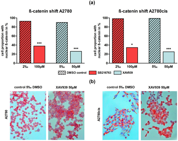 Methods: Biological effects of different Wnt modulators (SB216763, XAV939 and triptolide) on the EOC cell lines A2780 and its platinum-resistant clone A2780cis were investigated via multiple functional tests. Immunohistochemistry (IHC) was carried out to compare the expression levels of Wnt marker proteins (β-catenin, snail/ slug, E-cadherin) in patient specimens and to correlate them with lifetime data.