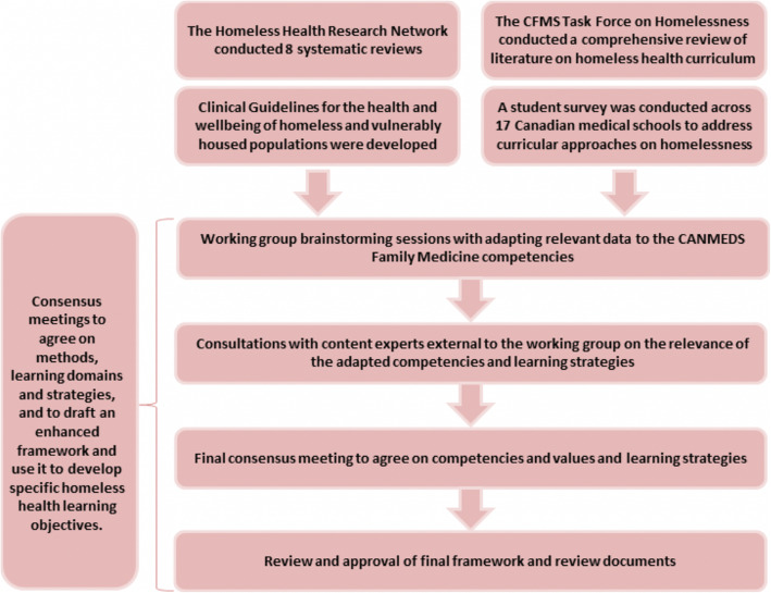 Methods: A medical student task force and educators conducted a mixed method study, including a scoping review of homeless health curriculum and competencies, a cross-country survey of medical students, and unique clinical guidelines. The task force collaborated with persons with lived experience and clinical guideline developers from the Homeless Health Research Network. The students presented at the Toronto Homeless Health Summit and refined the framework with feedback from homeless health experts.