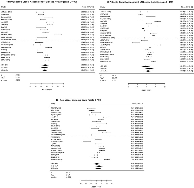 Methods: This secondary analysis was based on randomised controlled trials (RCTs) identified in a systematic literature review. Baseline characteristics of patients with RA with inadequate response to conventional synthetic DMARDs were compared between RCTs published in 1999-2009 and those published in 2010-2017 using random-effects meta-analyses.