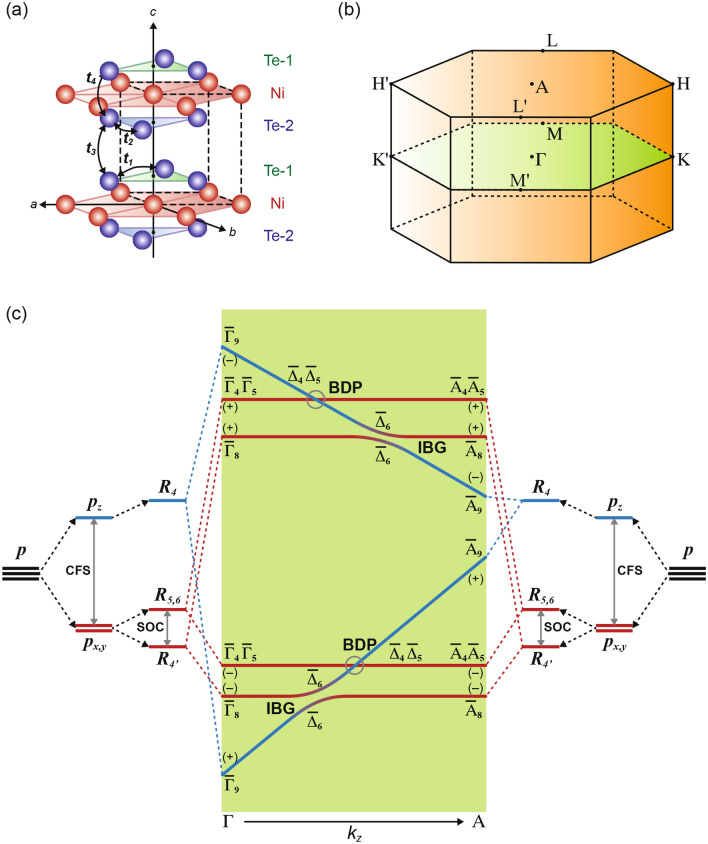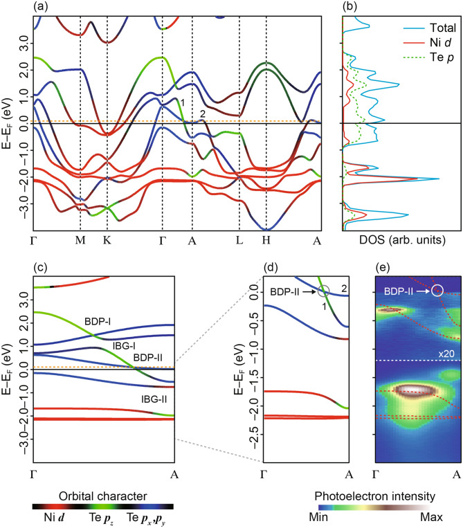 Transition-metal dichalcogenides (TMDs) offer an ideal platform to experimentally realize Dirac fermions. However, typically these exotic quasiparticles are located far away from the Fermi level, limiting the contribution of Dirac-like carriers to the transport properties. Here we show that NiTe2 hosts both bulk Type-II Dirac points and topological surface states. The underlying mechanism is shared with other TMDs and based on the generic topological character of the Te p-orbital manifold. However, unique to NiTe2, a significant contribution of Ni d orbital states shifts the energy of the Type-II Dirac point close to the Fermi level. In addition, one of the topological surface states intersects the Fermi energy and exhibits a remarkably large spin splitting of 120 meV. Our results establish NiTe2 as an exciting candidate for next-generation spintronics devices.