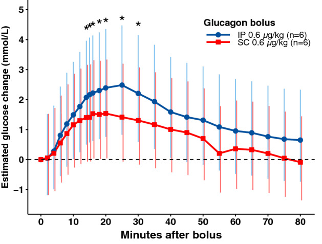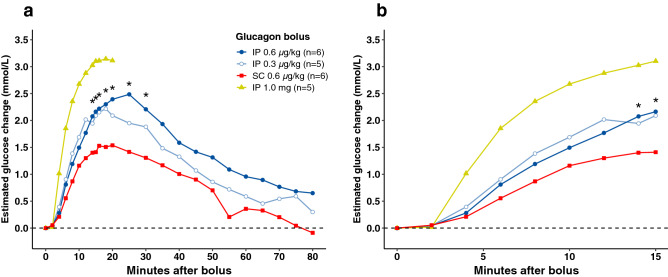 - Blauw H, Wendl I, DeVries JH, Heise T, Jax T. Pharmacokinetics and pharmacodynamics of various glucagon dosages at different blood glucose levels. Diabetes Obes. Metab. 2016;18:34–39. - PubMed
