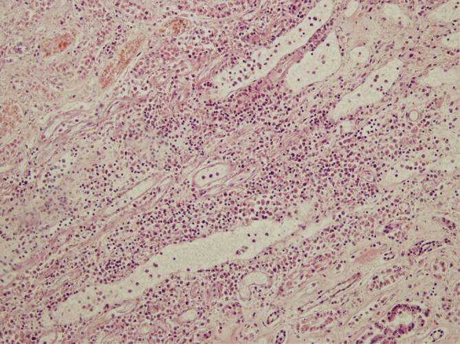 Bei letalem Verlauf einer SARS-CoV-2-Infektion kommt nach bisherigem Kenntnisstand eine Beteiligung mehrerer innerer Organe in Betracht. Im Vordergrund stehen pathologische Befunde im Lungengewebe, berichtet wird aber auch von direkt oder indirekt als Folge einer Infektion mit SARS-CoV‑2 auftretenden (histo-)pathologischen Befunden im Nierengewebe, in der Leber und im Myokard. Der Vergleich der histopathologischen Diagnostik mit konventionell-histologischen Färbungen bei 3 im Zusammenhang mit einer SARS-CoV-2-Infektion verstorbenen Männern zeigt teils identische Befunde und erlaubt Überlegungen zu Chronologie und Pathophysiologie des Krankheitsverlaufes. Zwei Männer wurden intensivmedizinisch invasiv beatmet; ein Mann starb nach 8 Tagen häuslicher Quarantäne ohne Therapie. Es zeigt sich ein großes Spektrum SARS-CoV-2-assoziierter Befunde.