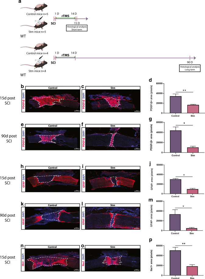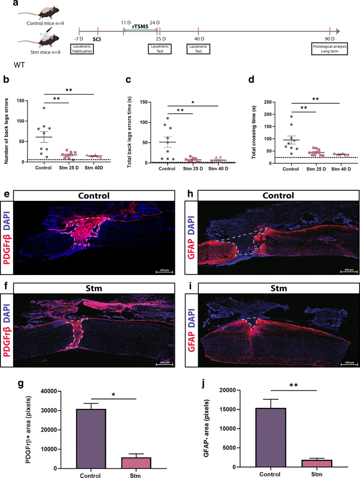 Spinal cord injury (SCI) leads to a loss of sensitive and motor functions. Currently, there is no therapeutic intervention offering a complete recovery. Here, we report that repetitive trans-spinal magnetic stimulation (rTSMS) can be a noninvasive SCI treatment that enhances tissue repair and functional recovery. Several techniques including immunohistochemical, behavioral, cells cultures, and proteomics have been performed. Moreover, different lesion paradigms, such as acute and chronic phase following SCI in wild-type and transgenic animals at different ages (juvenile, adult, and aged), have been used. We demonstrate that rTSMS modulates the lesion scar by decreasing fibrosis and inflammation and increases proliferation of spinal cord stem cells. Our results demonstrate also that rTSMS decreases demyelination, which contributes to axonal regrowth, neuronal survival, and locomotor recovery after SCI. This research provides evidence that rTSMS induces therapeutic effects in a preclinical rodent model and suggests possible translation to clinical application in humans.