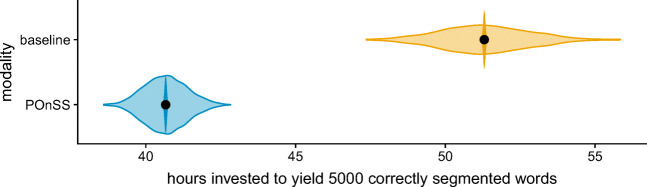 Despite advances in automatic speech recognition (ASR), human input is still essential for producing research-grade segmentations of speech data. Conventional approaches to manual segmentation are very labor-intensive. We introduce POnSS, a browser-based system that is specialized for the task of segmenting the onsets and offsets of words, which combines aspects of ASR with limited human input. In developing POnSS, we identified several sub-tasks of segmentation, and implemented each of these as separate interfaces for the annotators to interact with to streamline their task as much as possible. We evaluated segmentations made with POnSS against a baseline of segmentations of the same data made conventionally in Praat. We observed that POnSS achieved comparable reliability to segmentation using Praat, but required 23% less annotator time investment. Because of its greater efficiency without sacrificing reliability, POnSS represents a distinct methodological advance for the segmentation of speech data.