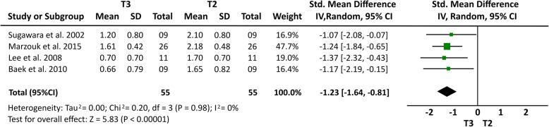 Results: Six hundred twenty-four articles met the initial inclusion criteria. From these, only 6 remained. The mean posttreatment follow-up time was 2.5 years (SD = 1.04). The overbite showed a standardized mean relapse of - 1.23 mm (95% CI - 1.64, - 0.81, p < 0.0001). Maxillary and mandibular incisors presented a non-significant mean relapse, U1-PP - 0.04 mm (95% CI - 0.55, 0.48) and L1-MP - 0.10 mm (95% CI - 0.57, 0.37). Molar intrusion showed a relapse rate around 12% for the maxillary molars and a 27.2% for mandibular molars.