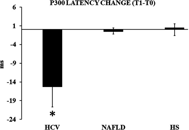 Cognition was assessed in hepatitis C virus (HCV) patients, who did not meet the criteria for a minimal hepatic encephalopathy. Their liver function was compensated. We then disentangled potential cognitive changes associated with a sustained virologic response at 12 weeks (SVR-12), following treatment with direct antiviral agents (DAAs). We studied 23 selected HCV patients with a battery of standard neuropsychological tests, and with recordings of the P300 wave, a cerebral potential of "cognitive" significance. There was a baseline evaluation (T0) and a second one 6 months later (T1). We had 2 control groups of comparable age and sex, i.e., 15 patients suffering from non-alcoholic fatty liver disease (NAFLD) and 15 healthy subjects. At T0, we detected a significant (p < 0.05) cognitive impairment in the HCV group, which involved episodic and working memory, attention, visuospatial and verbal abilities, executive functions, and logic reasoning. The P300 latency was significantly (p < 0.05) delayed in the group. At T1, we observed some significant (p < 0.05) HCV recovery in given test domains, e.g., memory, executive functions, and reasoning. Accordingly, the P300 latency shortened significantly (p < 0.05). HCV patients exhibited subtle cognitive defects, somehow independent of their liver condition, possibly linked to direct or indirect brain involvement by the virus. These defects partly recovered following the SVR-12, as achieved through DAAs. The P300 wave was a valid neurophysiologic counterpart of these changes. DAAs can have a role in the early preservation of cognition in HCVs.