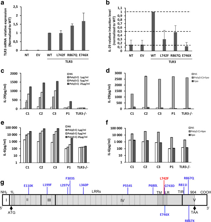 Puumala hantavirus (PUUV) hemorrhagic fever with renal syndrome (HFRS) is common in Northern Europe; this infection is usually self-limited and severe complications are uncommon. PUUV and other hantaviruses, however, can rarely cause encephalitis. The pathogenesis of these rare and severe events is unknown. In this study, we explored the possibility that genetic defects in innate anti-viral immunity, as analogous to Toll-like receptor 3 (TLR3) mutations seen in HSV-1 encephalitis, may explain PUUV encephalitis. We completed exome sequencing of seven adult patients with encephalitis or encephalomyelitis during acute PUUV infection. We found heterozygosity for the TLR3 p.L742F novel variant in two of the seven unrelated patients (29%, p = 0.0195). TLR3-deficient P2.1 fibrosarcoma cell line and SV40-immortalized fibroblasts (SV40-fibroblasts) from patient skin expressing mutant or wild-type TLR3 were tested functionally. The TLR3 p.L742F allele displayed low poly(I:C)-stimulated cytokine induction when expressed in P2.1 cells. SV40-fibroblasts from three healthy controls produced increasing levels of IFN-λ and IL-6 after 24 h of stimulation with increasing concentrations of poly(I:C), whereas the production of the cytokines was impaired in TLR3 L742F/WT patient SV40-fibroblasts. Heterozygous TLR3 mutation may underlie not only HSV-1 encephalitis but also PUUV hantavirus encephalitis. Such possibility should be further explored in encephalitis caused by these and other hantaviruses.