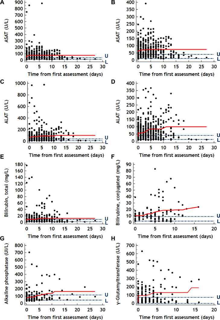 Background: In patients with severe COVID-19, no data are available on the longitudinal evolution of biochemical abnormalities and their ability to predict disease outcomes.