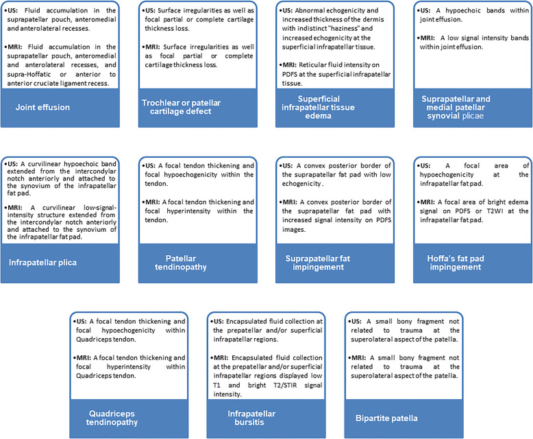 Conclusion: Ultrasonography can be used to make a swift screening and assessment of painful anterior knee and as an alternative to MRI when it is unavailable or contraindicated.