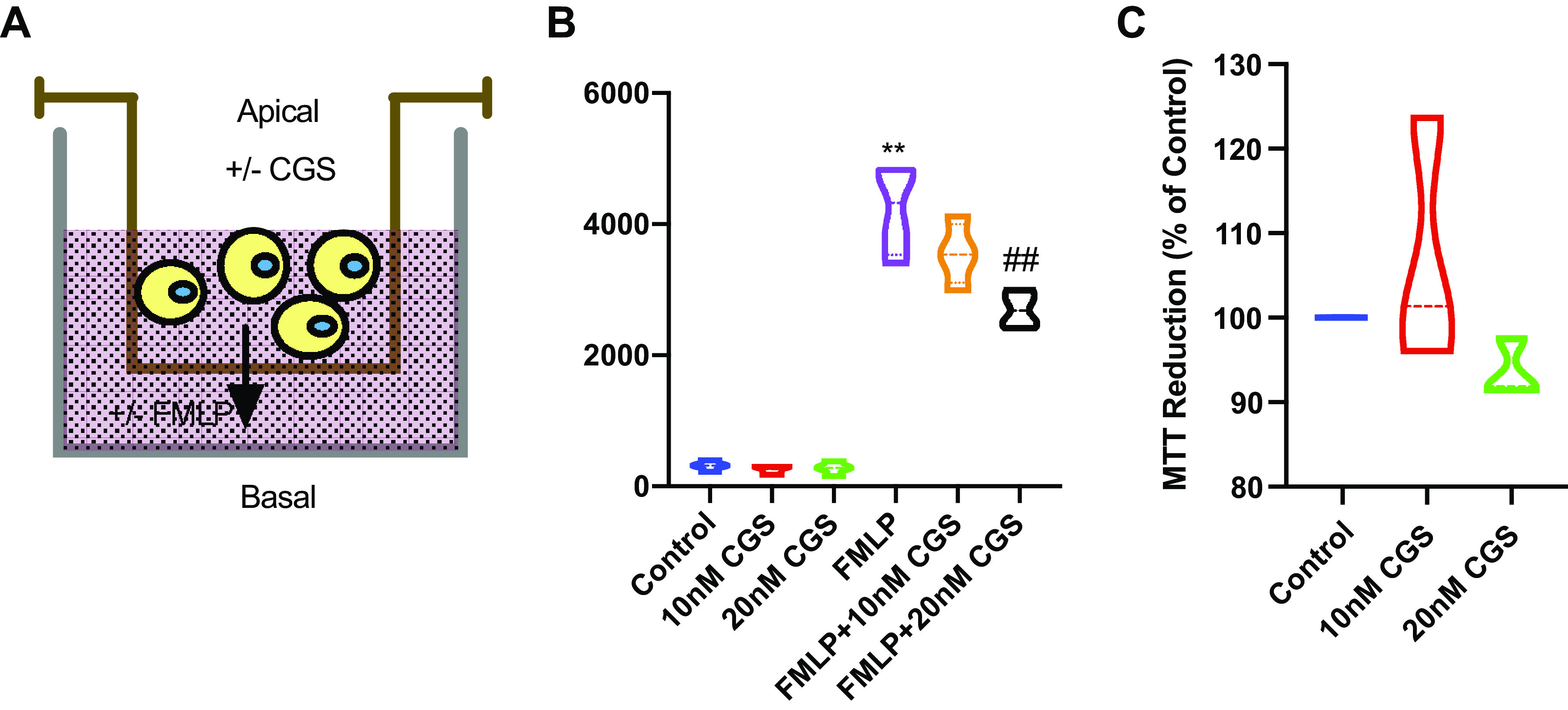 Acute respiratory distress syndrome (ARDS) is characterized by pulmonary edema and poor gas exchange resulting from severe inflammatory lung injury. Neutrophilic infiltration and increased pulmonary vascular permeability are hallmarks of early ARDS and precipitate a self-perpetuating cascade of inflammatory signaling. The biochemical processes initiating these events remain unclear. Typically associated with extracellular matrix degradation, recent data suggest matrix metalloproteinases (MMPs) are regulators of pulmonary inflammation. To demonstrate that inhalation of a broad MMP inhibitor attenuates LPS induced pulmonary inflammation. Nebulized CGS27023AM (CGS) was administered to LPS-injured mice. Pulmonary CGS levels were examined by mass spectroscopy. Inflammatory scoring of hematoxylin-eosin sections, examination of vascular integrity via lung wet/dry and bronchoalveolar lvage/serum FITC-albumin ratios were performed. Cleaved caspase-3 levels were also assessed. Differential cell counts and pulse-chase labeling were utilized to determine the effects of CGS on neutrophil migration. The effects of CGS on human neutrophil migration and viability were examined using Boyden chambers and MTT assays. Nebulization successfully delivered CGS to the lungs. Treatment decreased pulmonary inflammatory scores, edema, and apoptosis in LPS treated animals. Neutrophil chemotaxis was reduced by CGS treatment, with inhalation causing significant reductions in both the total number and newly produced bromodeoxyuridine-positive cells infiltrating the lung. Mechanistic studies on cells isolated from humans demonstrate that CGS-treated neutrophils exhibit decreased chemotaxis. The protective effect observed following treatment with a nonspecific MMP inhibitor indicates that one or more MMPs mediate the development of pulmonary edema and neutrophil infiltration in response to LPS injury. In accordance with this, inhaled MMP inhibitors warrant further study as a potential new therapeutic avenue for treatment of acute lung injury.