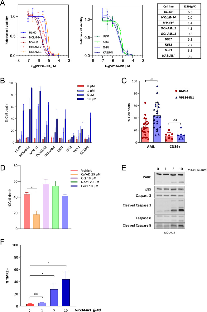 Antileukemic activity of the VPS34-IN1 inhibitor in acute myeloid leukemia