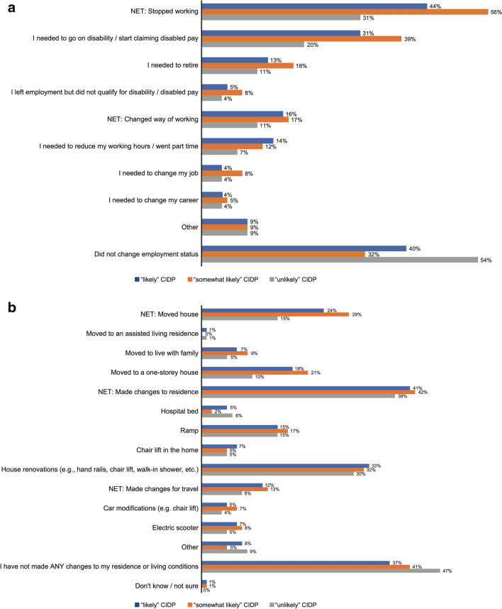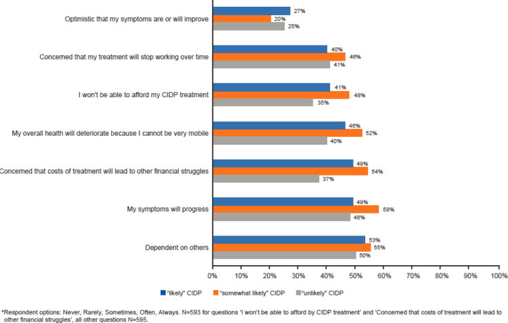 Methods: Data from an online survey of 595 individuals with self-reported CIDP, recruited by the Guillain-Barré syndrome (GBS)/CIDP Foundation, were used to assess disease and treatment burden. A total of 37% of patients were classified as "likely", 34% as "somewhat likely", and 28% as "unlikely" CIDP.