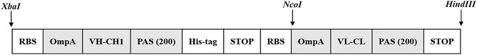Certolizumab pegol is a Fab' antibody fragment for treatment of rheumatoid arthritis and Crohn's disease which is conjugated to a 40 kDa PEG molecule in order to increase the protein half-life. PEGylation may have disadvantages including immunogenicity, hypersensitivity, vacuolation, decreased binding affinity and biological activity of the protein. To overcome these problems, PASylation has been developed as a new approach. The nucleotide sequence encoding 400 amino acid PAS residues was genetically fused to the corresponding nucleotide sequences of both chains of certolizumab. Then, the bioactivity as well as physicochemical and pharmacokinetic properties of the recombinant PASylated expressed protein was assayed. Circular dichroism spectroscopy demonstrated that the random coil structure of PAS sequences did not change the secondary structure of the PASylated Fab' molecule. It was observed that PASylation influenced the properties of the Fab' molecule by which the hydrodynamic radius and neutralization activity were increased. Also, the antigen binding and binding kinetic parameters improved in comparison to the PEGylated Fab' antibody. Pharmacokinetic studies also showed prolonged terminal half-life and improved pharmacokinetic parameters in PASylated recombinant protein in comparison to the PEGylated and Fab' control molecules. The results reconfirmed the efficiency of PASylation approach as a potential alternative method in increasing the half-life of pharmaceutical proteins.