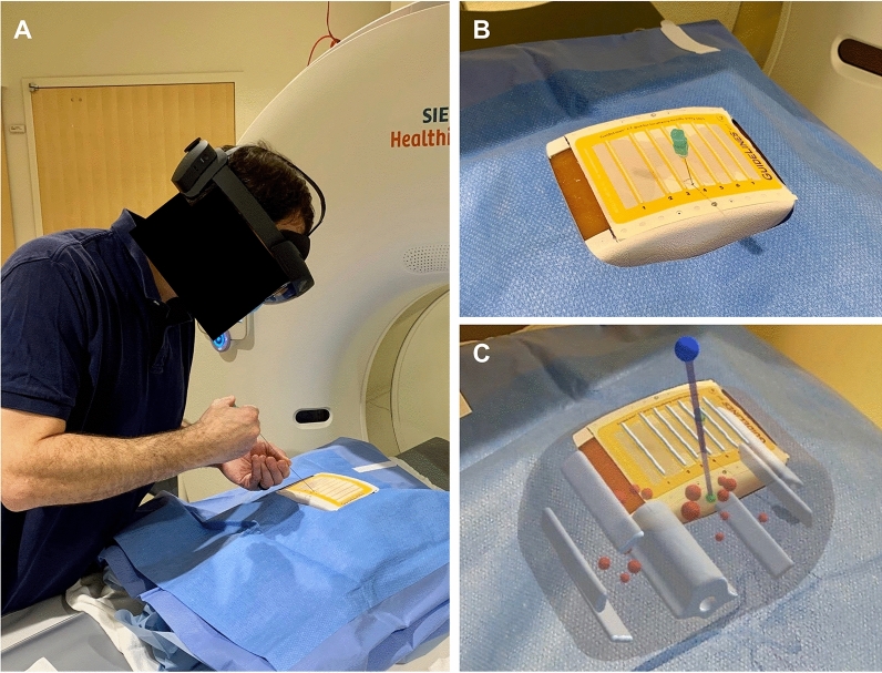 Augmented reality improves procedural efficiency and reduces radiation dose for CT-guided lesion targeting: a phantom study using HoloLens 2