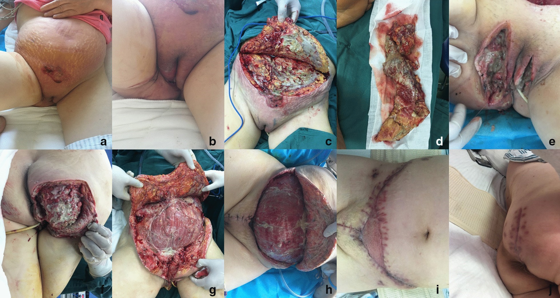 Results: There were 12 patients enrolled in this paper, with the average age of 60 years old. It showed a male predominance with male-to-female ratio of 6:1. The average of laboratory risk indicator for necrotizing fasciitis (LRINEC) score was 10.1. Diabetes mellitus was the main predisposing disease. 11 patients received emergency debridement and 1 patient died of sepsis on the 2nd day after admission. The mortality rate was 8.3%. 6 cases developed complications, including sepsis, pneumonia, renal and heart failure. Negative pressure wound therapy (NPWT) was applied in 10 cases, while the rest 1 received normal daily dressing changes because of fecal contamination. Flaps were utilized in 2 patients to cover the defect, including one with advancement flap and one with pudendal-thigh flap, while others received secondary suture, secondary healing, skin graft or combined management. No relapse was observed during the follow-up visits.