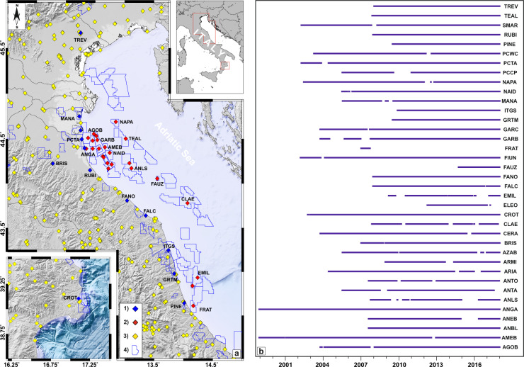 Geopositioning time series from offshore platforms in the Adriatic Sea